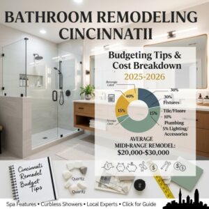 Planning a bathroom remodel in Cincinnati? In 2025, average costs range from $6,000 to $17,000 for standard projects, though national figures show $12,122 overall, influenced by local permits and Ohio codes. With 15+ years as trusted remodelers, we offer free, transparent estimates to maximize your home’s value and efficiency.